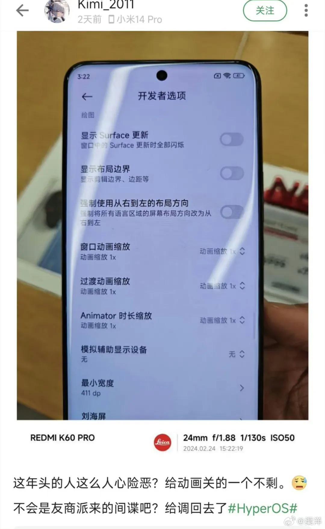 有网友爆料,小米之家的新机系统被人动了手脚,故意关闭了一些开关设置,导致手机可能看上去会卡卡的,这样是不是想让潜在客户失去购买欲望?我想问下这么干的人,如果他去体验试驾车,那款车不喜欢或者说就是“故意”去体验不是最喜欢的品牌,是不是也要搞搞破坏?#小米14#